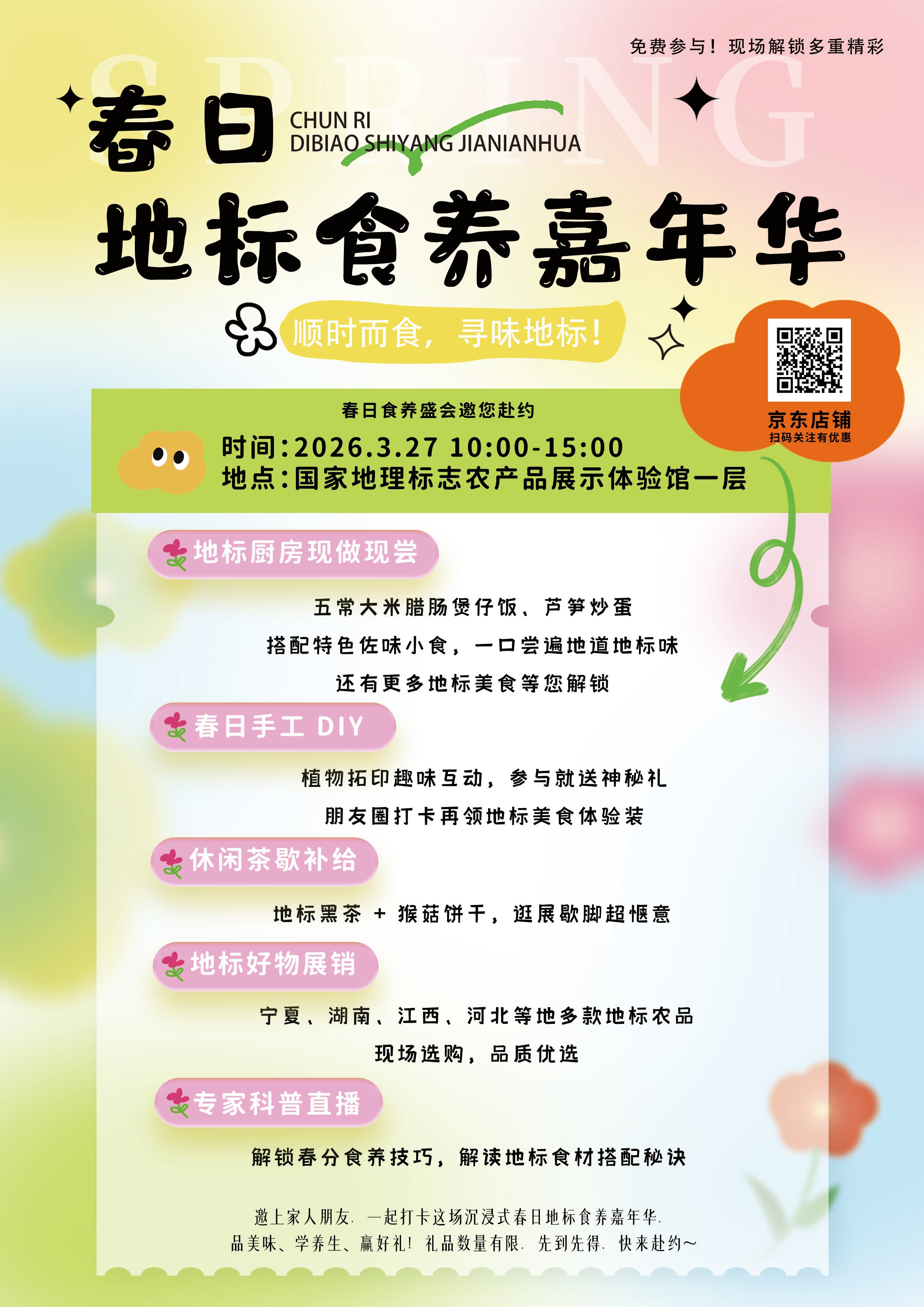 邀上家人朋友,一起打卡这场沉浸式春日地标食养嘉年华,品美味、学养生、赢好礼!春日地标食养嘉年华,欢迎您的参加!